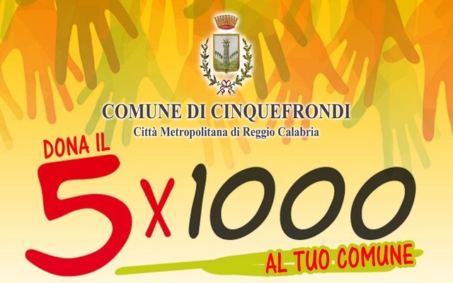 La tua scelta consentirà al Comune di Cinquefrondi di realizzare progetti di utilità sociale e interventi in favore delle fasce più deboli della popolazione.